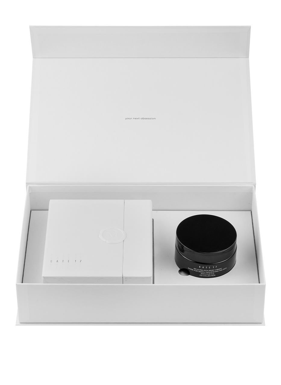 The Luxury Coffret Gate 17 is an elegant box containing 200 ml of body cream and 100 ml of eau de parfum.
